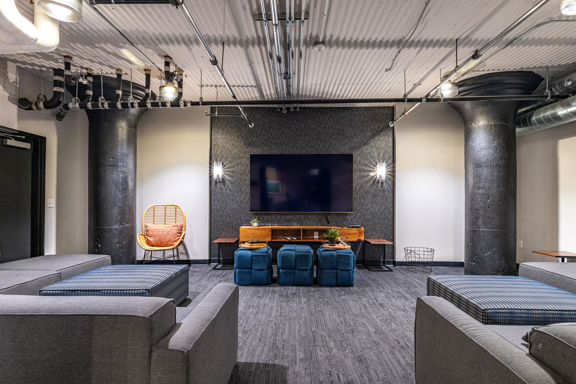 Residents at The Jax have access to a range of amenities designed to support both relaxation and productivity. Community spaces include a fitness center, private yoga studio, and a cinema lounge, along with a tech-ready entertainment area that supports work-from-home flexibility. Additional features such as bike storage, off-street parking, a dog wash station, and a package locker system help simplify daily routines. Inside each apartment, in-unit washers and dryers, walk-in closets, and modern kitchens with quartz countertops and stainless-steel appliances create a space that is both practical and comfortable.